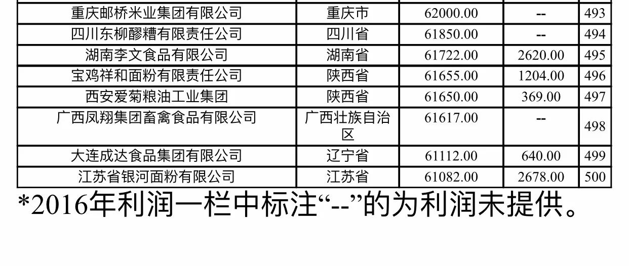 新型農(nóng)業(yè)經(jīng)營主體是發(fā)展現(xiàn)代農(nóng)業(yè)和實(shí)現(xiàn)鄉(xiāng)村振興的重要力量。為全面了解各類新型農(nóng)業(yè)經(jīng)營主體的發(fā)展情況,在相關(guān)主管部門和各省區(qū)市的大力支持下,農(nóng)民日報(bào)社組織權(quán)威專家開展課題研究,并采集和梳理大量數(shù)據(jù),依據(jù)2016年?duì)I業(yè)收入進(jìn)行排名,入圍門檻為6.11億元,綜合形成了《2018農(nóng)業(yè)產(chǎn)業(yè)化龍頭企業(yè)500強(qiáng)排行榜》。