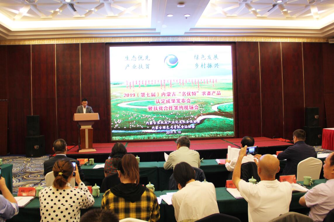 2019(第七屆)內(nèi)蒙古名優(yōu)特農(nóng)畜產(chǎn)品認(rèn)定成果發(fā)布會(huì)暨扶貧合作簽約現(xiàn)場(chǎng)會(huì)在內(nèi)蒙古飯店隆重舉行