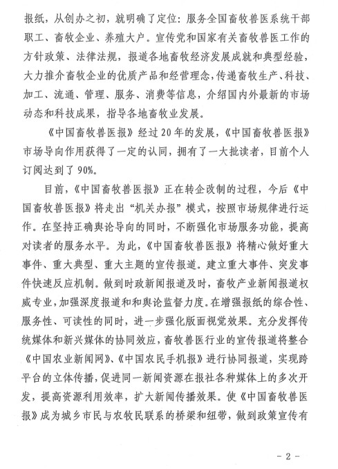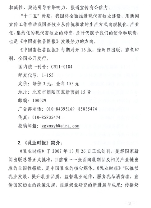 關(guān)于建議會(huì)員單位訂購《中國畜牧獸醫(yī)報(bào)》、《乳產(chǎn)業(yè)時(shí)報(bào)》的通知