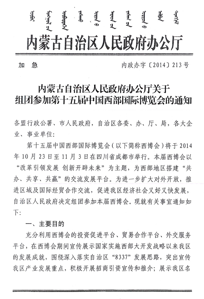 關(guān)于第十五屆中國西部國際博覽會(huì)的通知