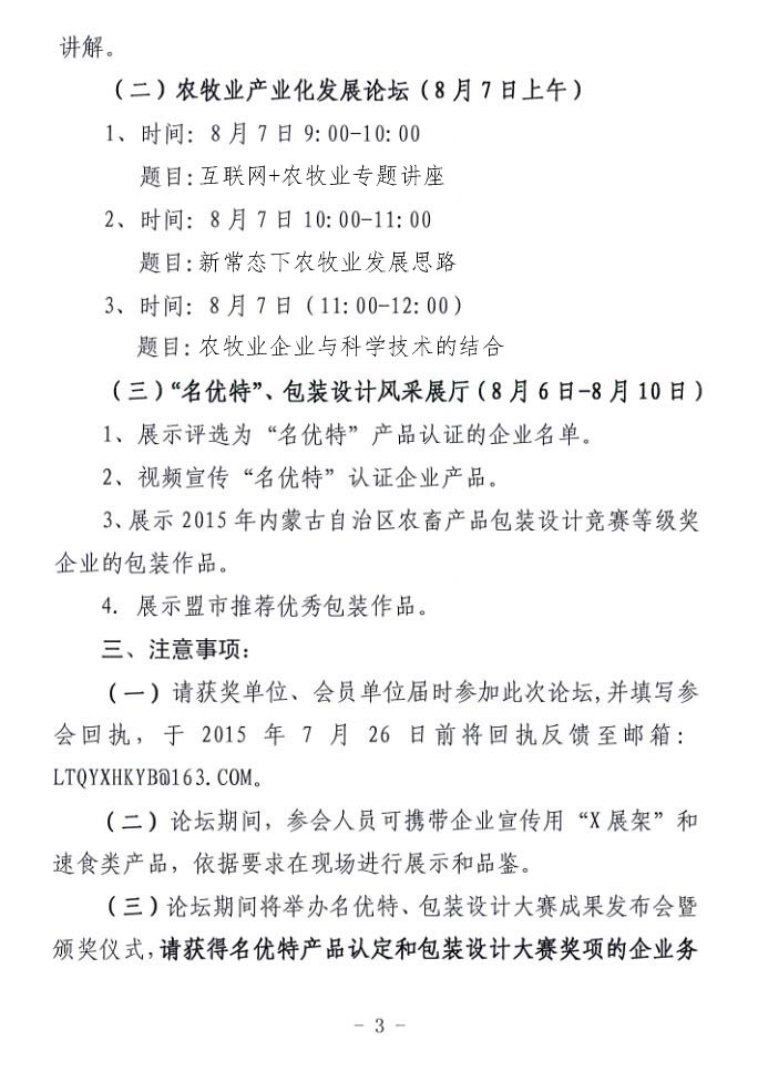關于舉辦2015內(nèi)蒙古農(nóng)牧業(yè)產(chǎn)業(yè)化發(fā)展論壇的通知