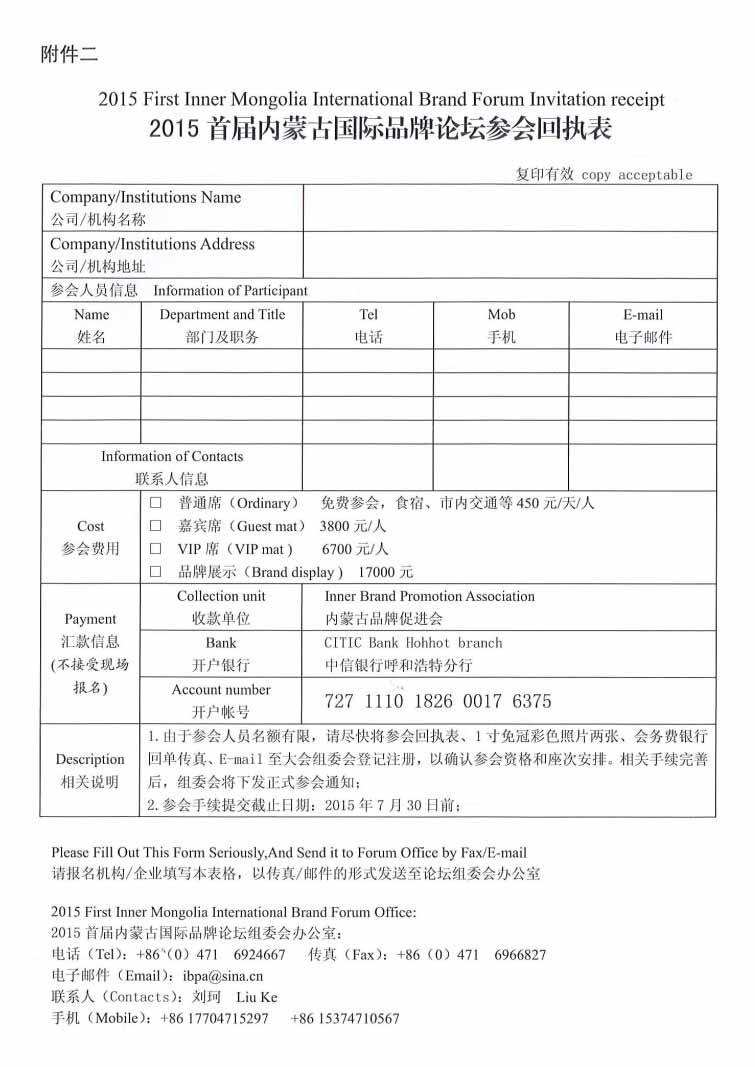 關(guān)于參加“2015首屆內(nèi)蒙古國際品牌論壇”的通知