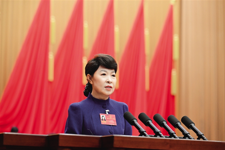 自治區(qū)人民政府主席王莉霞作政府工作報告。 本報記者 韓卿立 攝